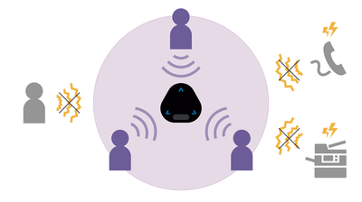 問題:開放的工作空間可能會因同事們聊天、辦公設備和其他會議聲而顯得吵雜。進行遠距會議時,對話可能會被這些噪音中斷,遠距與會者將無法聽到您的聲音。
