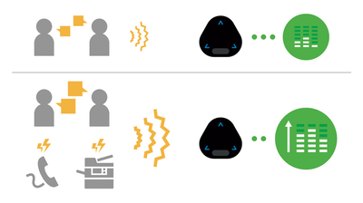 問題:在開放的工作空間中使用喇叭麥克風時,如果環境背景噪音出現變化,喇叭輸出有時會太小聲或太大聲,進而導致資訊漏失或為周遭的人員帶來困擾。在某些情況下,還有個人資訊被聽到的風險。