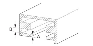 * 請參照以下圖示,RMA1MB 可照明軌道搭配使用,尺寸 A 大於 1.5mm 並小於 6.0mm,尺寸 B 大於 3mm。