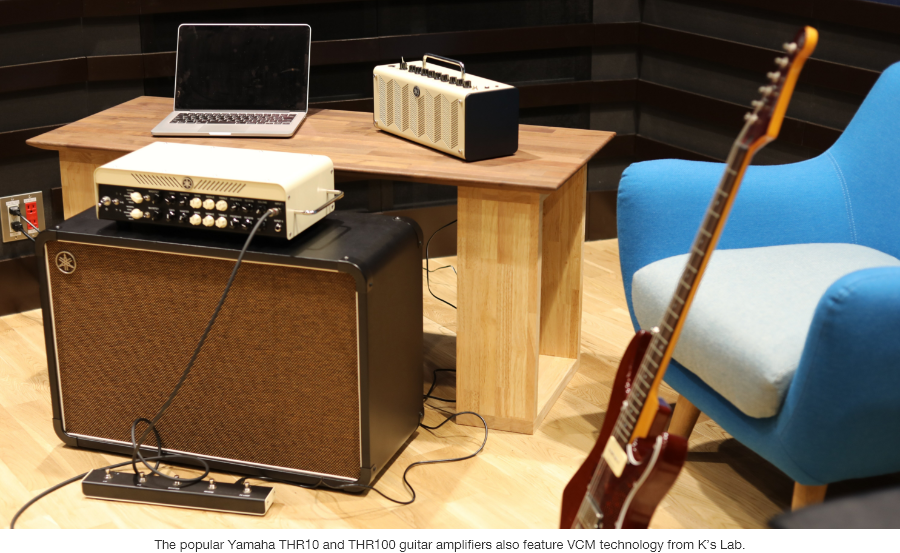 目前 K’s Lab 產出的許多 VCM 技術最終都在專業設備中得以應用,其中一些已經得到更廣泛使用者的注意。THR 系列吉他擴大機就是最好的範例。K’s Lab 的研究人員 Takashi Mori 負責 THR 系列的開發。儘管 Mori 先生在大學主要從事本質上與聲音無關的模擬半導體物理特性研究,但他加入 Yamaha 後的第一個主要工作是 THR 系列。