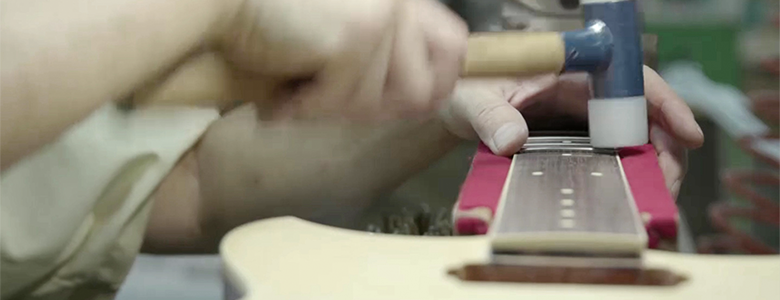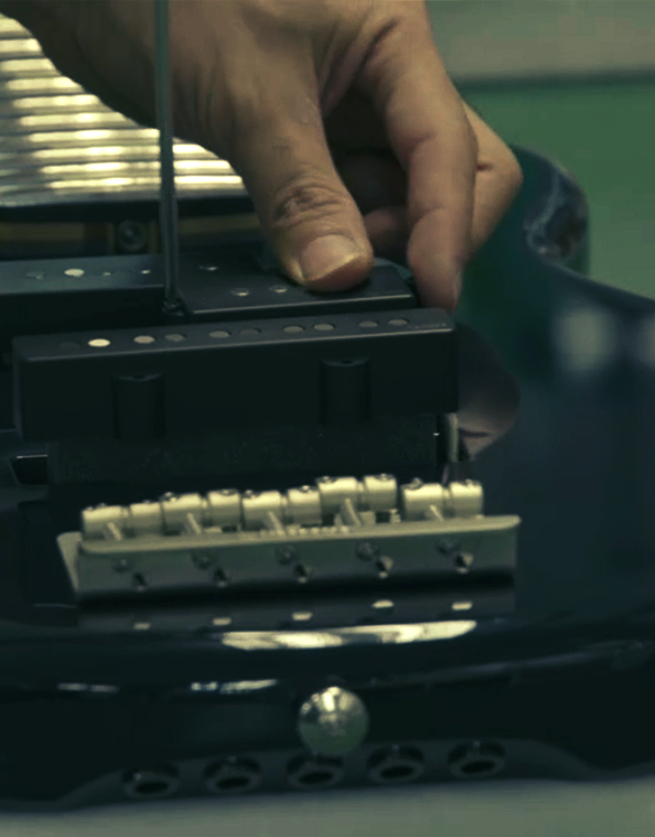Final assembly is when the rest of the guitar’s hardware and parts, including any pickups or electronics on an electric guitar or bass are fitted. Every single part is adjusted carefully on each instrument to optimize the sound, ensuring that string vibrations are transmitted properly and playability is perfect.