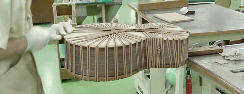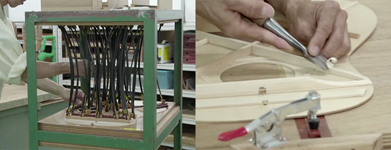 This step-by-step process results in less residual stress when the body is complete than when they are glued at the same time, making it easy for the whole body to vibrate and product a rich, resonant tone.