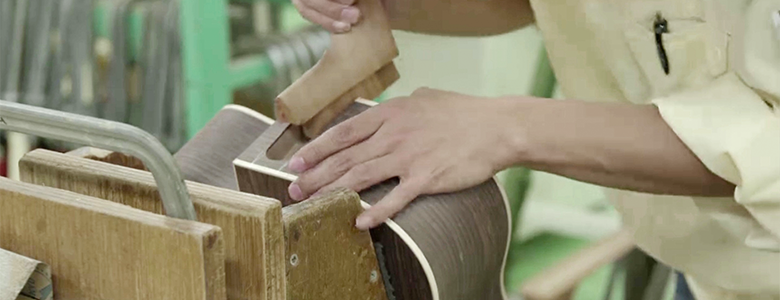 There are some tasks that are best left to machines, particularly those that require extreme precision and repeatability; for example, cutting the fret slots in fingerboards is a critical job that is handled by precision computer-controlled machinery. But in order to deliver instruments that really meet guitarist’s needs there are elements that require individual attention and flexibility. That’s where the skill and experience of Yamaha craftspeople really shines.