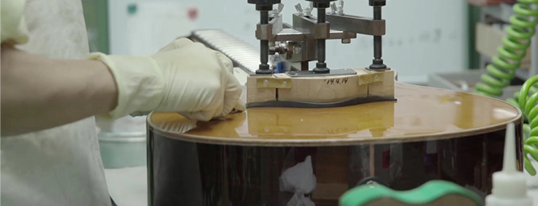 At Yamaha, we utilize methods including vacuums and air-presses to ensure a high level of secure clamping for the bracing. These methods preserve the strength of the bond between the bracing and the guitar top and back, reducing the loss of vibrations throughout the instrument.