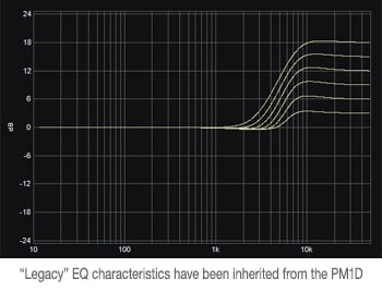 According to Mr. Tamiya, “The equalizer that has been included in consoles and processors since the PM1D has been retained as the “Legacy” EQ, while three new algorithms have been added: Precise, Aggressive, and Smooth. The difference is clear when you see the EQ response curves.”