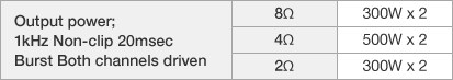 連接到兩個獨立 8-ohm 喇叭時,PX3 輸出功率達 300W+300W。以 Power Boost Mode模式使用時,將針對 600W 喇叭,以 8-ohms 適當輸出。