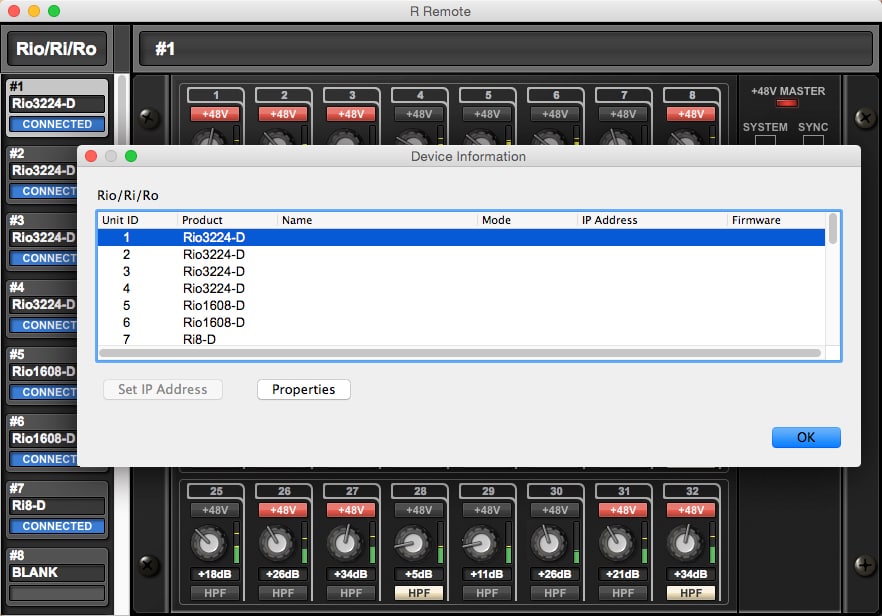 R Remote 應用程式能從遠端控制 Rio3224-D、Rio1608-D、Ri8-D 以及 Tio1608-D 機架裝置中的前級放大器,而無需透過 CL 系列或具有遠端控制功能的類似數位混音座。