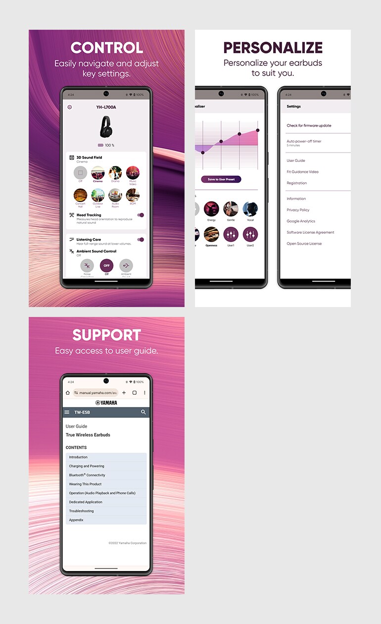 使用 Headphone Control 應用程式,輕鬆對Yamaha耳機進行個人化設定。