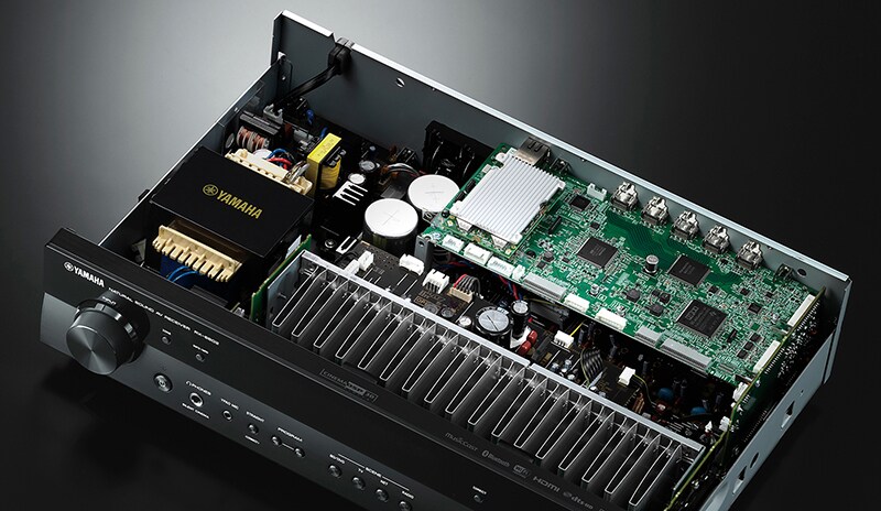 同等級最優的音效表現,得歸功於重新改版的接地和電力供應模式,以及精心選擇和客製設計零件,如變壓器和散熱器。配備類比獨立擴大機結構、低時基誤差 PLL 電路和高功率輸出。