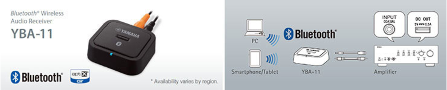 有了YBA-11,您將可以從含有藍牙功能的手機或PC無線串流音樂至網路接收器。並透過數位連結及aptX®聲音編碼演算,您將能以優化音質享受無線音樂串流。連結位於擴大機後方面板上的DC-輸出即可啟動YBA-11。