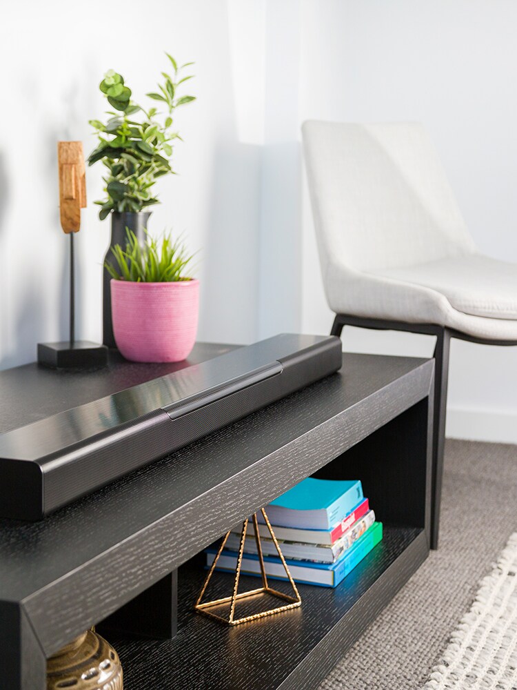 擁有Sound Bar的重要優勢是可將雜亂程度降到最低 - 房間內不再需要使用四周的環繞揚聲器和線材。