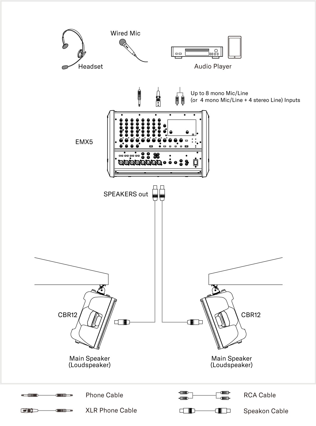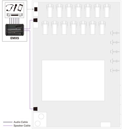 具備高輸出主動式混音器及耐用、輕量且喇叭安裝容易的簡易PA系統,適合在需要高品質音訊但預算有限的場所播放音樂,如舞蹈學校及健身中心等。