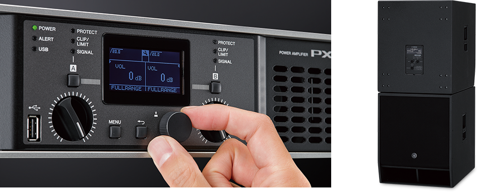 與 Yamaha PX 系列擴大機或其他相容的訊號處理器搭配使用時,CXS XLF 超低音揚聲器可以充分利用專屬的喇叭處理器調音設定。此外,與 DXS XLF 型號相同,只要處理器配置專用 DSP 設定,就可以在心形模式下使用(請瀏覽 Yamaha 專業音訊網站以了解更多資訊)。