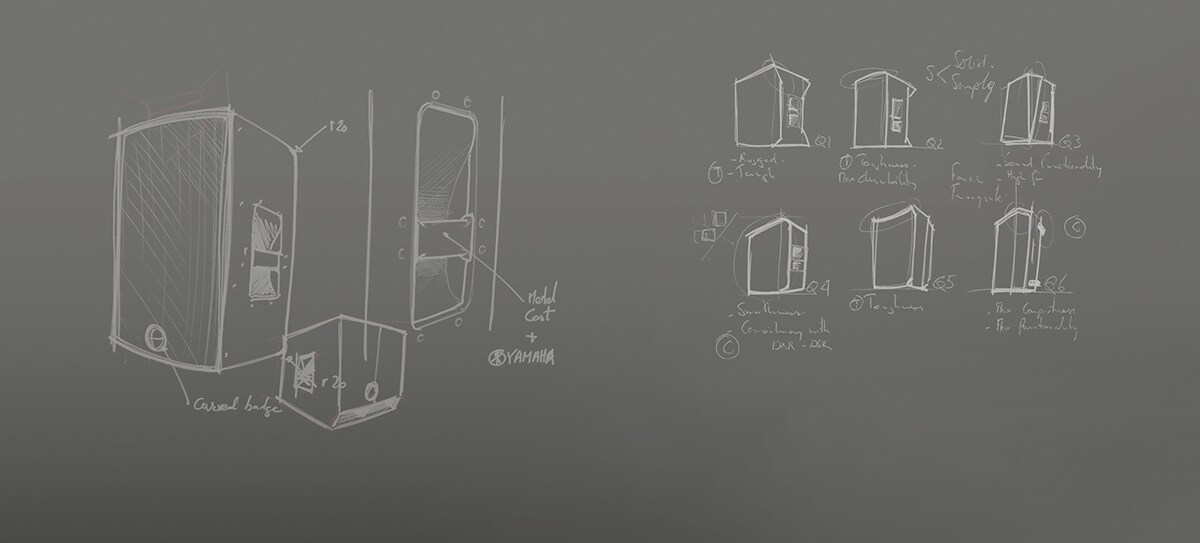 在設計和開發 DSR/DXR/DBR 系列喇叭後,我們知道簡單而靈活的外殼將可以吸引廣泛群眾,所以可以被整個音響界廣泛接受。這是整個 DZR 設計中的重要考慮因素,既與 Yamaha 喇叭簡約的設計理念一致,又巧妙體現喇叭的更高功率和卓越性能。事實上,我們的第一個草圖設計始終本著「簡單實體」的概念,經過漫長的反覆試驗後,我們最終決定完整實現我們對音響專業人士理想擴音喇叭的願景。
