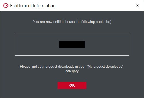 輸入代碼和序號後,螢幕將會顯示權利資訊。