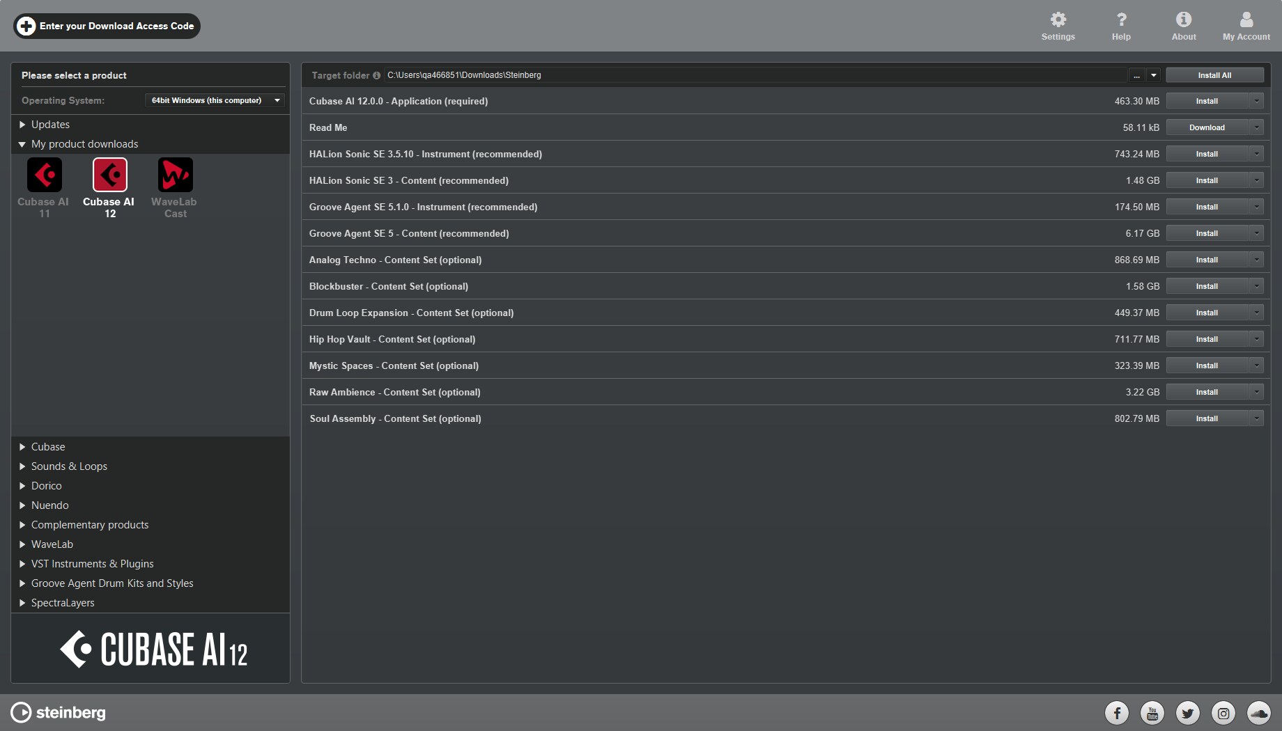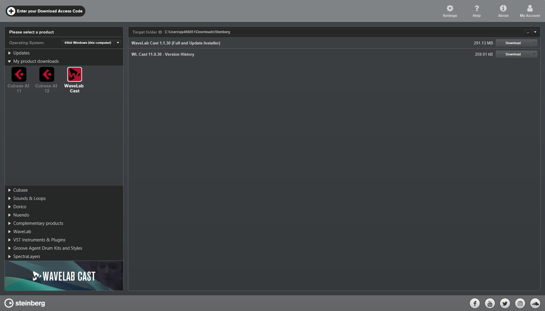 欲下載並啟用 Cubase AI 和 WaveLab Cast,請使用 Steinberg 下載助手。