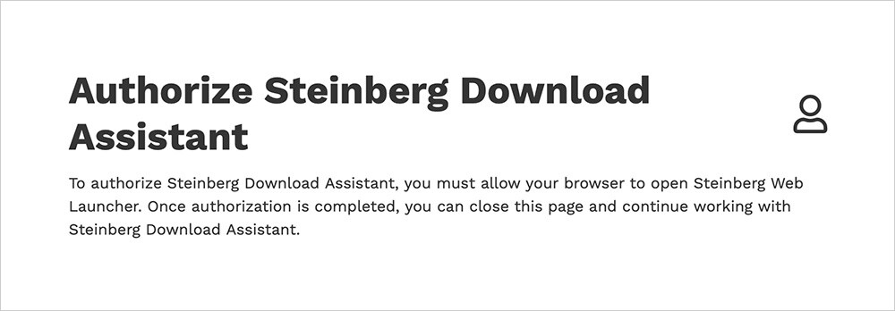 您會看到一個身分驗證畫面,要求您允許在瀏覽器中開啟 Steinberg 下載助手。 一旦您給予許可後,即可使用 Steinberg 下載助手。