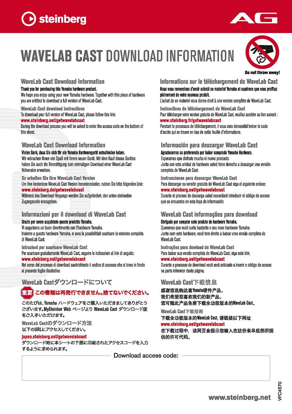 下載存取代碼會印在 包裝盒中的 AG 系列下載資訊表上。