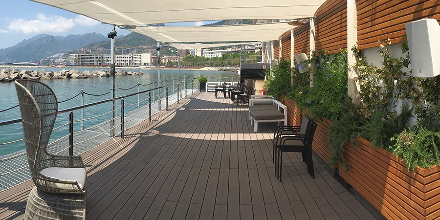 經過幾年處於不善的維修狀態,意大利薩勒諾市的Embarcadero海濱酒吧/餐廳經過了大規模翻新,以紀念其五十週年。它增加了一個全面的Yamaha商業安裝解決方案(CIS)分區音響系統,提供高品質的聲音,同時容易控制。