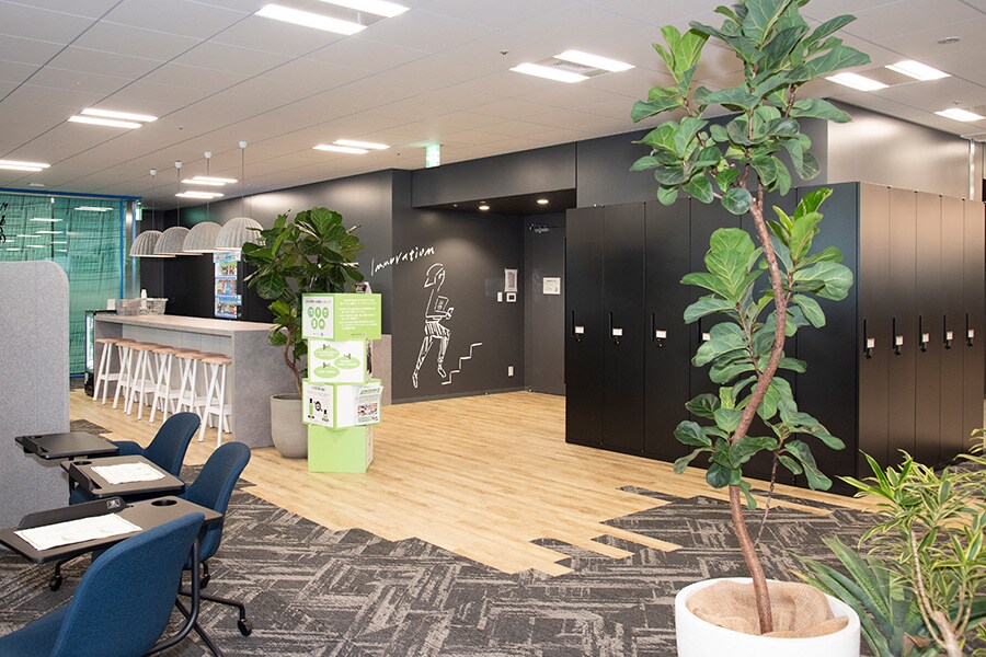 Washiyama 先生:目前因新冠病毒,分散式和混合工作愈發受到矚目,但我們自 2007 年以來持續致力於創新工作方式。2015 年,我們導入遠距辦公系統,並在整個公司推廣不受時間和地點限制的工作方式。從 2019 年 10 月起,我們不僅將業務分配到飯田橋總部,還根據其職務分配到新川崎技術基地和日本橋創新基地。我們在大都會區的七處設置活動基地,並落實工作方式,讓我們的員工可在輕鬆且離家近的環境工作,達到工作與生活的平衡,並維持業務連續性。