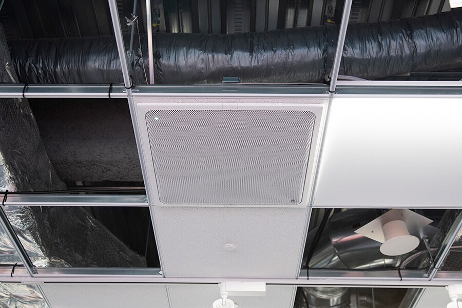 Open Innovation Space ADECIA 音箱和麥克風安裝在天花板上。