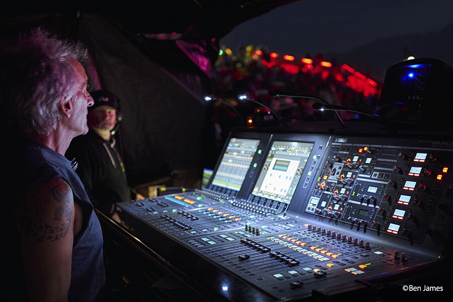 ET 的麥克風選擇是根據每次巡迴演出的特定需求而量身打造,根據特定情況,優先選擇 Shure 麥克風,包括適用人聲的 KSM 11 和 KSM 9。他與監聽工程師 Matt Kornick(也在 RIVAGE PM 任職)的合作,確保舞台上的表演者和觀眾都喜歡這樣的混音效果。「我們始終使用 Shure。如果情況變糟,SM57 和 SM58 也可以發揮作用,且總能發揮出色,」ET 說。他珍視 Yamaha RPio 前級擴大機,透過變壓器模擬和 SILK 與獨特的麥克風/聲源組合,進行聲音配對的能力,讓他每場表演都可以呈現理想的音響效果。