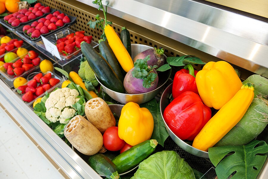 DEK Aoyama 展示的新鮮水果和蔬菜