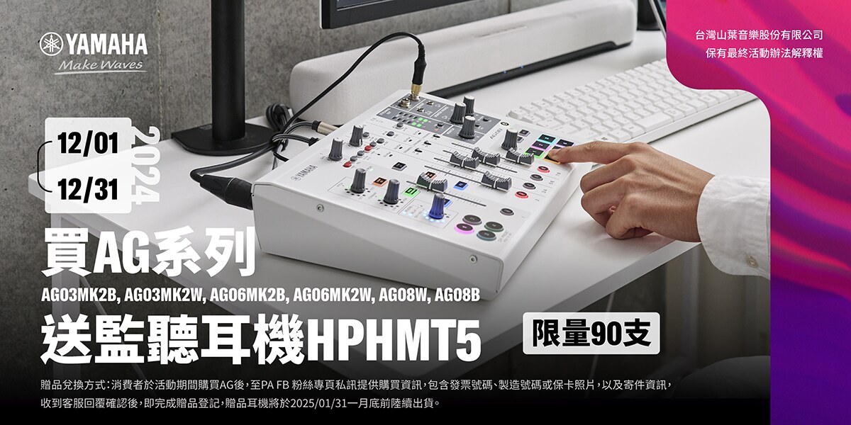 限量好禮!購買Yamaha AG/ZG系列送HPHMT5監聽耳機 | 2024年12月限時活動