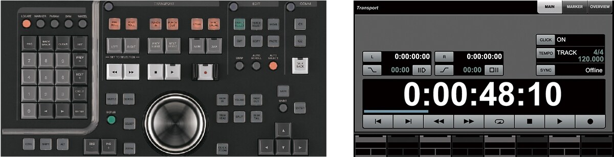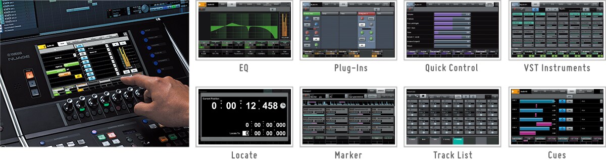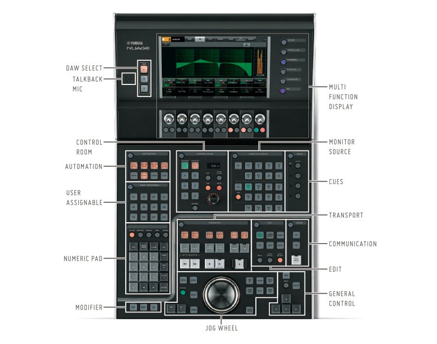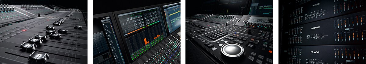 可以從 Nuage 化音器裝置(如 Nuendo、Cubase 和 Pro Tools)直接切換和控制最多三個 DAW,以便可以輕鬆有效地將對話、聲音效果,BGM 和大宗項目的其他元素組合在一起用做最後的混音。也可以根據項目要求來分配個別的 DAW 來混音和做記錄器的任務,或者各種其他配置。