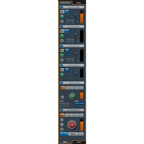 - Nuendo 控制室功能能用於控制監聽系統以及語音錄製的傳輸。 cue mix 在 Nuendo 內建立,而控制室能用於對講混音。