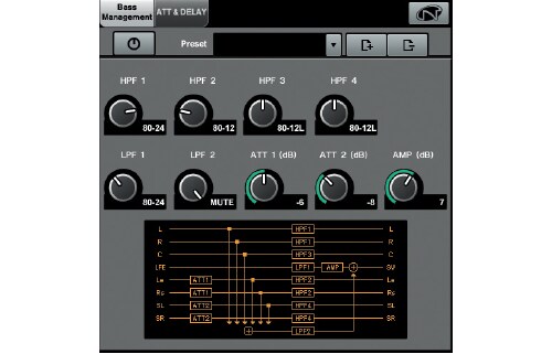 - 需要低音管理功能時,能使用 Nuage I/O 內建式低音管理功能。