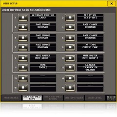 包括Sends on Fader、Tap Tempo及Set by Sel在內的許多混音座功能可指定到16個使用者定義鍵,以便進行即刻的指定操控功能。