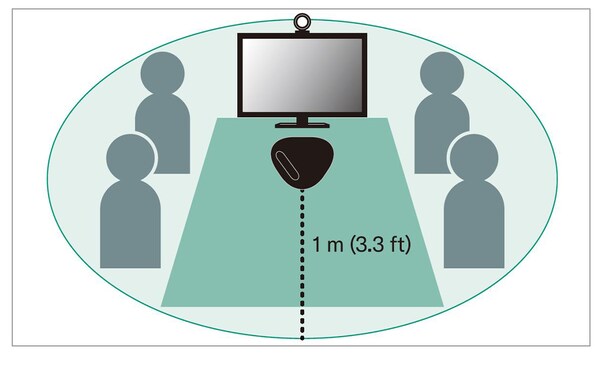 標準模式:中小型會議室收錄人聲的 SoundCap 模式:在開放式工作空間自動靜音分散注意力的噪音,以及僅在拾音範圍(半徑為 1 m)內擷取聲音