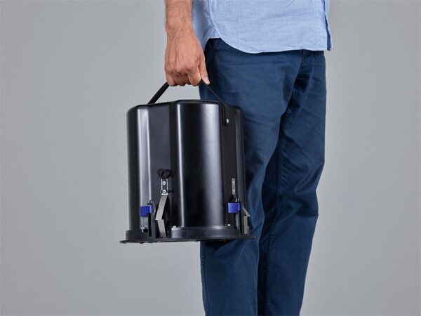 防掉落彈片可將喇叭牢固地固定在適當的位置,以便能安全有效地進行安裝。還有一個解鎖手柄,可以依照需要將喇叭從天花板平穩地卸下。