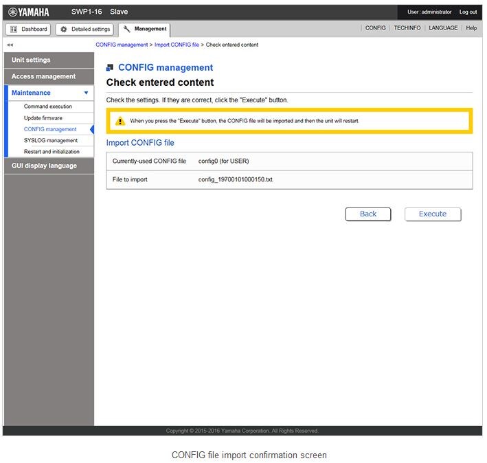 在 DANTE 模式下啟動交換器時,每次設定將以初始化狀態啟動,所以無需儲存或複製上次自訂的設定。在 USER 模式下,可以使用已儲存的自訂設定來啟動交換器,例如 VLAN 設定;並且可以複製這些設定來在不同的 SWP1 系列交換器上使用。從設定效率和備用交換器的角度來看,我們建議您將 SWP1 系列用於同一網路上的交換器。