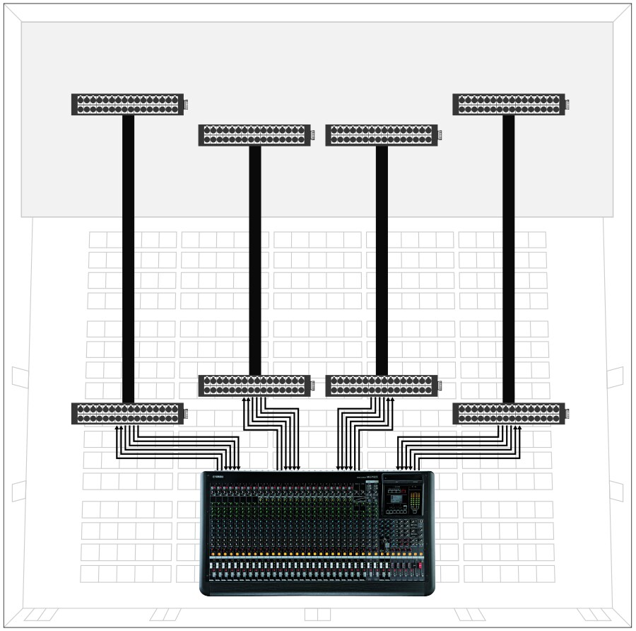 Dante 取代笨重昂貴的類比或使用 LAN 纜線的多核心佈線,如 CAT5e 和 CAT6。