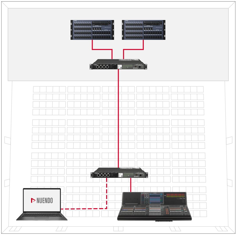 因為 Dante 使用邏輯佈線而不是實體點對點連線,只需要點選滑鼠,使用可用的連接埠,就可配置網路。