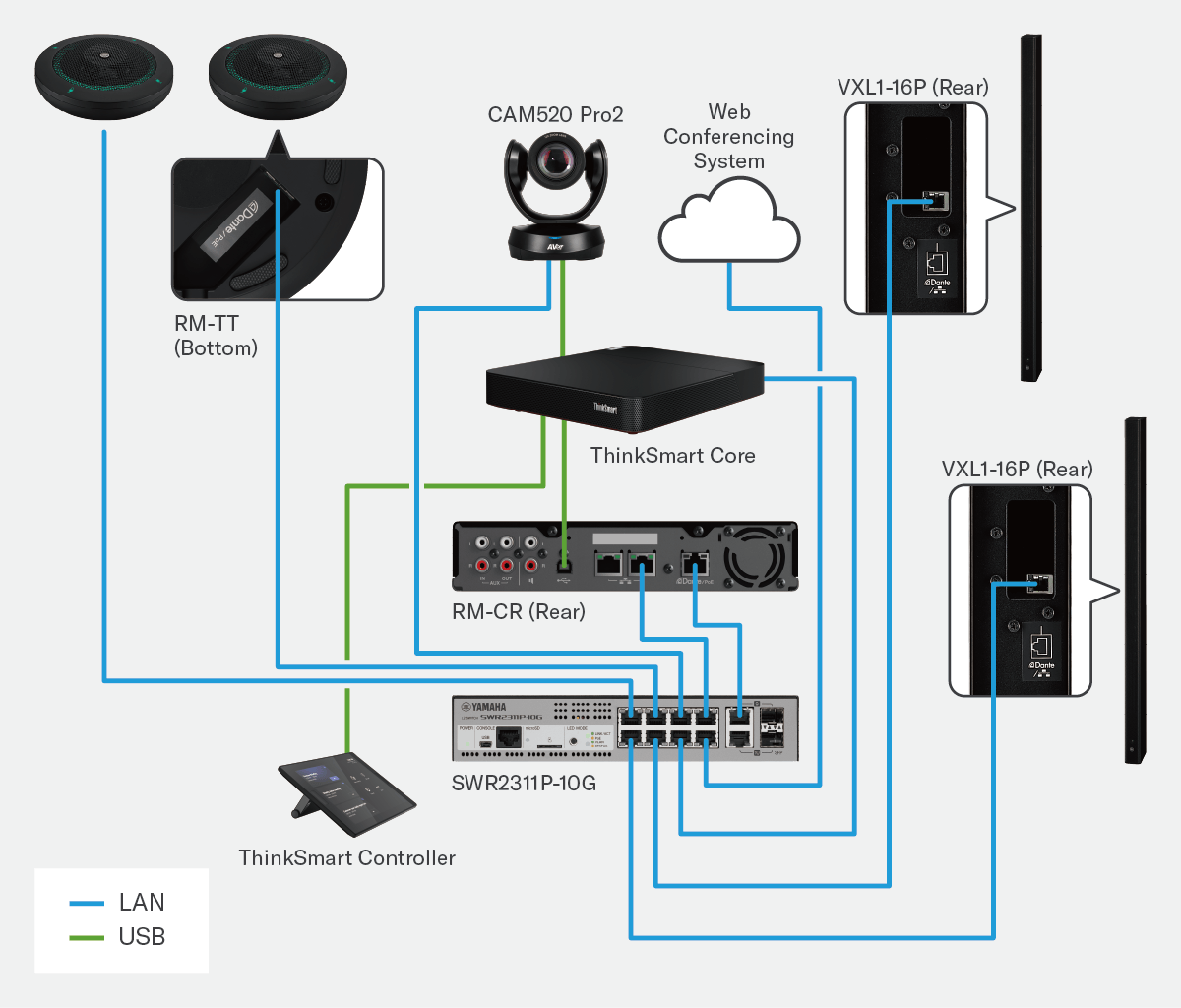 Yamaha 的吸頂陣列麥克風 RM-CG 和桌面陣列麥克風 RM-TT 可與 AVer 的 USB 會議相機結合使用,以透過 PTZApp 2 的使用來加強音訊追蹤功能。相同地,您可透過應用程式 PTZ Link 的使用,來把 AVer 的自動追蹤相機和 PTZ 相機與上述兩款麥克風整合,以實現語音追蹤功能。利用 Yamaha 的麥克風和相容軟體,相機將自動辨識房間內的發言者,並且切換到該人所在的預設點。這兩個軟體都是免費的,可從 AVer 網站下載。