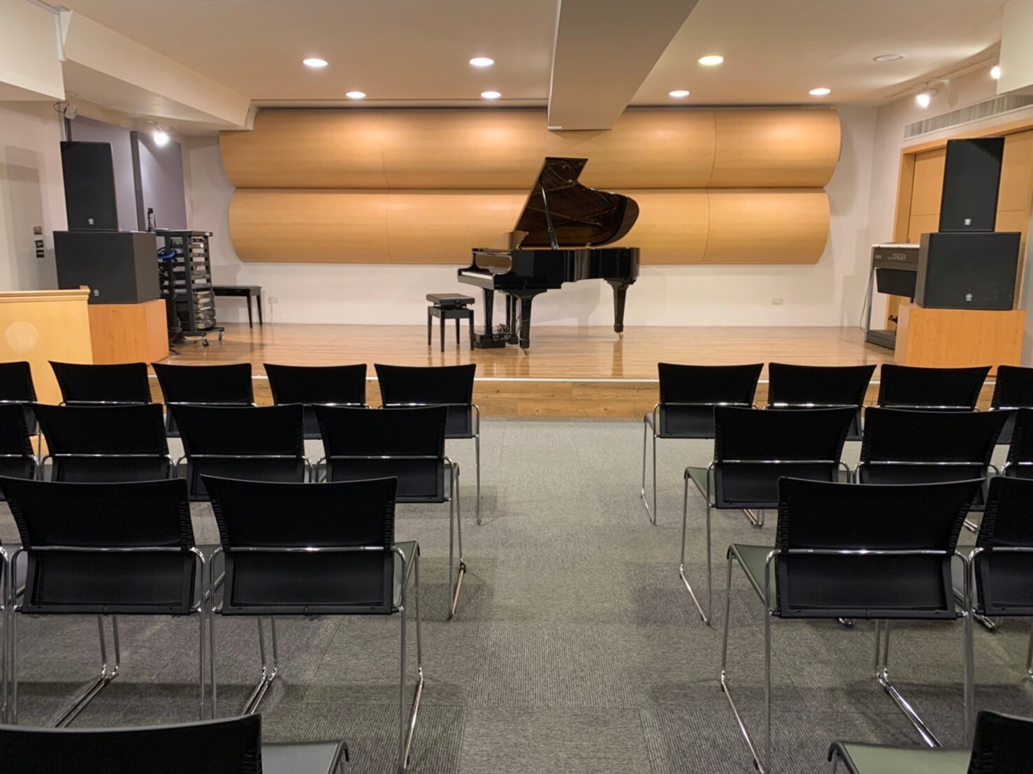 • ● 配備:混音器、DVD播放器、舞台照明、講台、白板、長條桌