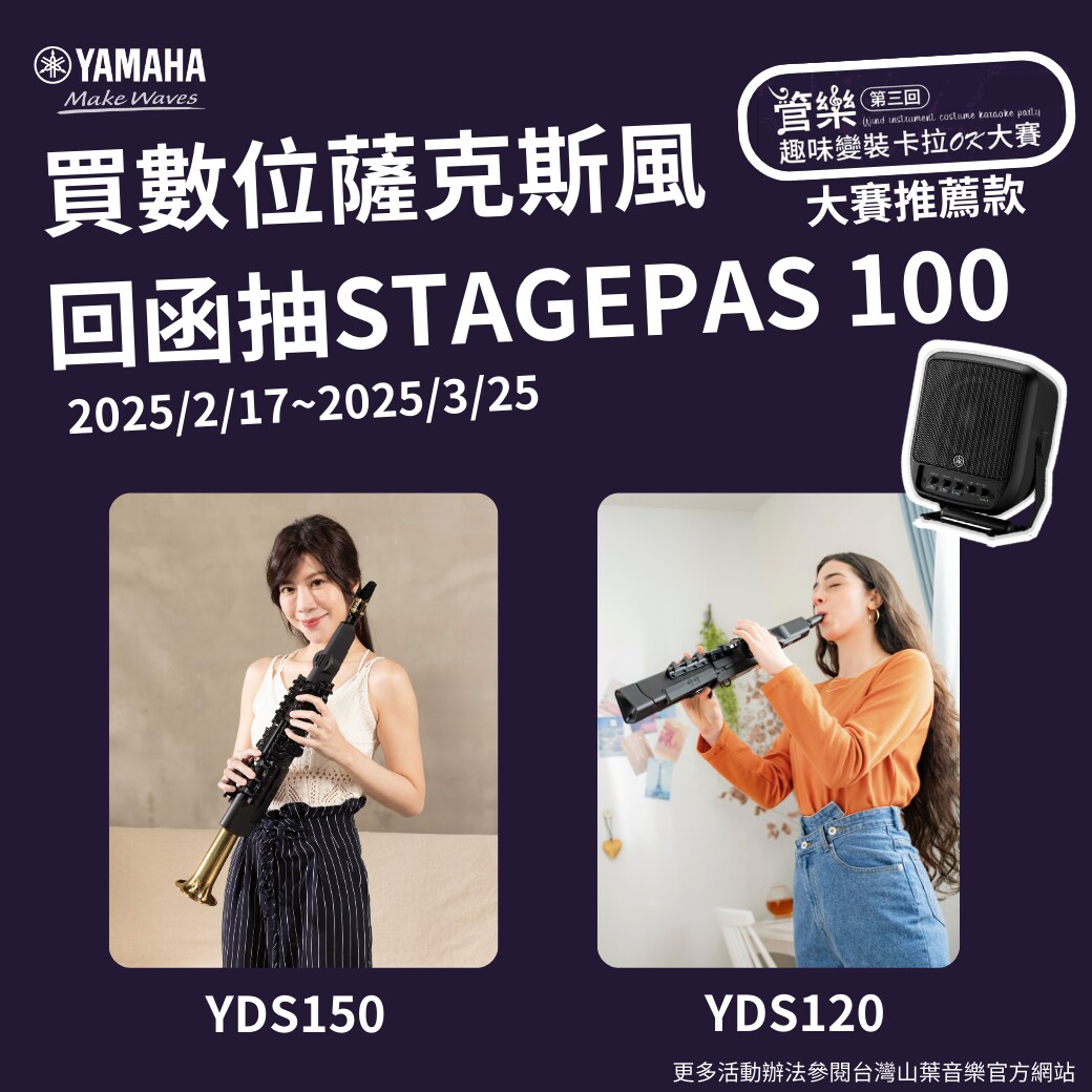 Yamaha現在推出「買數位薩克斯風,回函抽STAGEPAS 100BTR」,