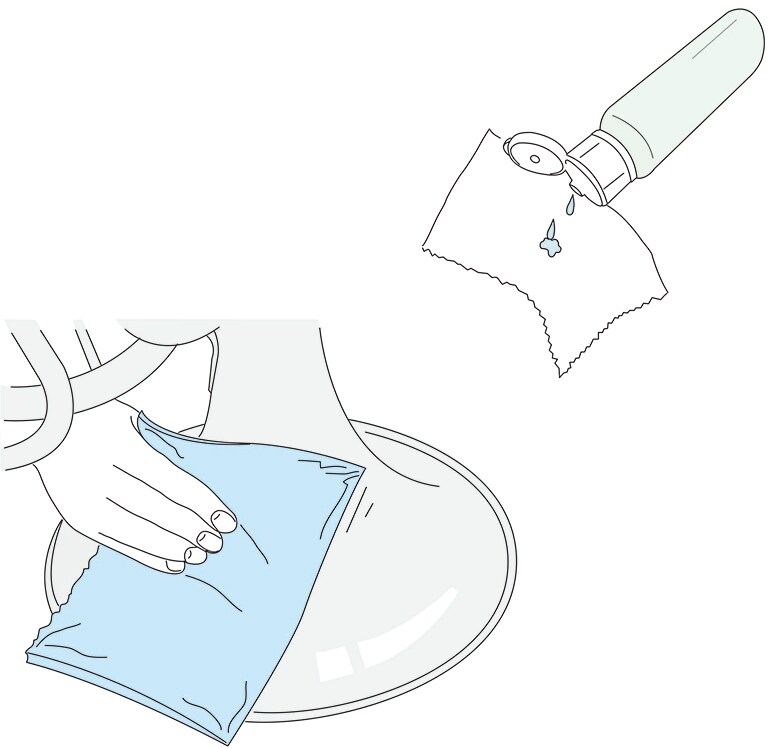 將少量清潔蠟滴在清潔紗布或擦拭布上,來進行樂器表面擦拭。