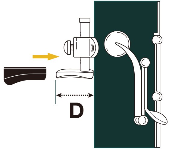 - 最理想的拇指座靠墊安裝深度,介於 13 和 15 mm深。