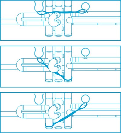 ・ 將滑管防滑環一端的鉤環,勾到第一活塞的手指鉤上。接著將另一端勾到第三活塞的鉤上。