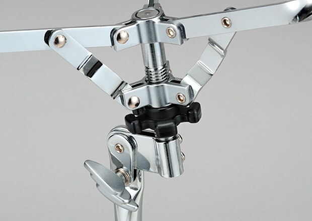 The ball clamp tilter lets you position the head angle freely. Aligning the snare and stand vertically reduces energy loss so you can get more power from every stroke. The design also makes lower settings possible giving you more room for deep shell snare drums.