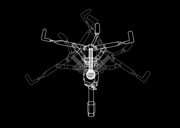 Knock-type spikes that extend with a single touch, combined with large rubber feet keep the stand stable and secure.