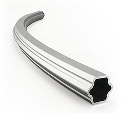鋁製長36吋x直徑34公釐的六邊形彎管。複雜的橫截面設計結合鋁合金,成為重量明顯更輕的彎管,同時強度大幅改進 ─ 可達一般圓管的兩倍。