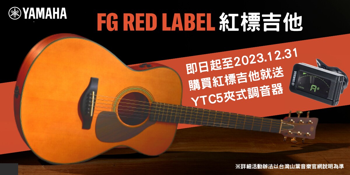 即日起至2023年12月31日止,凡期間內購買Yamaha FG Red Label紅標吉他系列(不限型號),憑購買證明即可向Yamaha申請兌換贈品: