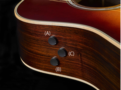 三個簡單的旋鈕可調整效果程度和輸出音量。小旋鈕佔用的空間更小,減緩因去除琴身木質而導致的音色損失。