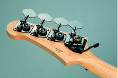Hipshot 調音器利用一個輕彈作為控制,讓「E」弦往下降直到「D」,齒輪調節讓音調準確。