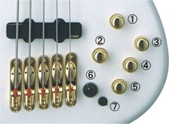 1. 拾音平衡器 2. 主音量 3. 低音 4. 中音 5. 高音 6. 中切頻率 7. 中切開關